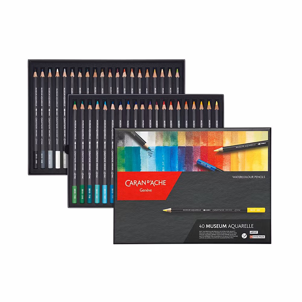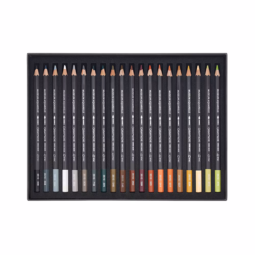 Akvarellblyantene til Caran d'Ache er i en klasse for seg selv og utmerker seg med sin kraftige pigmentering, høy lysekthet og vannløselige egenskaper. Med et utvalg på 76 farger tilgjengelig både enkeltvis og i flotte sett er det farger til å dekke ethvert motiv. Den solide kjernen på 3,8mm gir presis kontroll, samtidig som den tåler press og kan spisses både til skarpe detaljer og bredere flater. Museum aquarelle blyantene løser opp fullstendig i vann og gir intense akvarelleffekter med minimal anstrengelse. Blyanten fungerer godt alene eller som supplement til tradisjonell akvarellmaling og er ideelle for kunstnere som ønsker maksimal kontroll, fargedybde og profesjonell kvalitet.