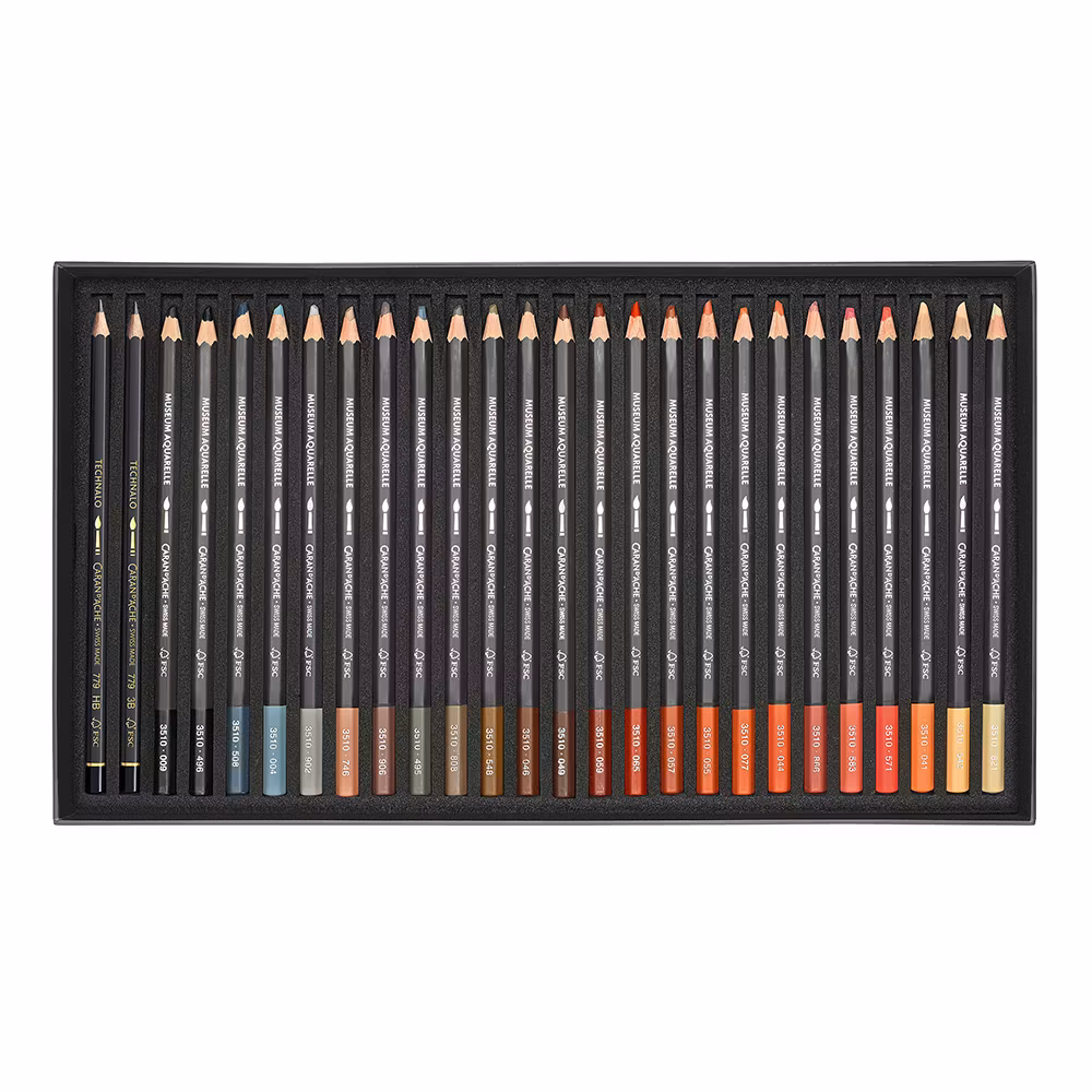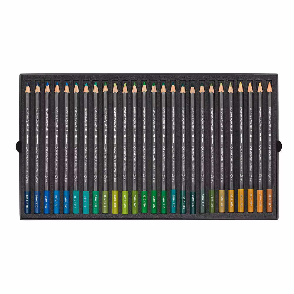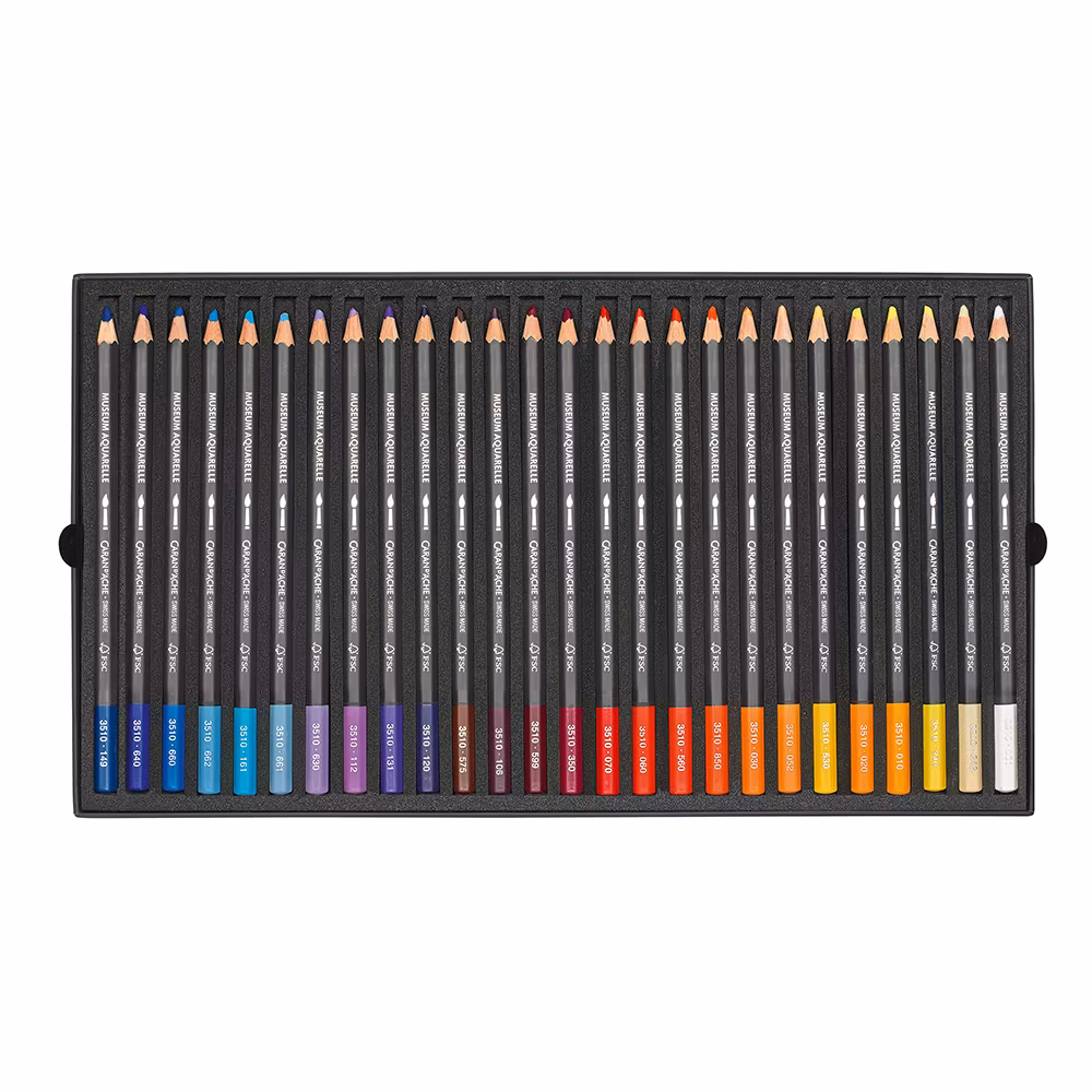 Akvarellblyantene til Caran d'Ache er i en klasse for seg selv og utmerker seg med sin kraftige pigmentering, høy lysekthet og vannløselige egenskaper. Med et utvalg på 76 farger tilgjengelig både enkeltvis og i flotte sett er det farger til å dekke ethvert motiv. Den solide kjernen på 3,8mm gir presis kontroll, samtidig som den tåler press og kan spisses både til skarpe detaljer og bredere flater. Museum aquarelle blyantene løser opp fullstendig i vann og gir intense akvarelleffekter med minimal anstrengelse. Blyanten fungerer godt alene eller som supplement til tradisjonell akvarellmaling og er ideelle for kunstnere som ønsker maksimal kontroll, fargedybde og profesjonell kvalitet.