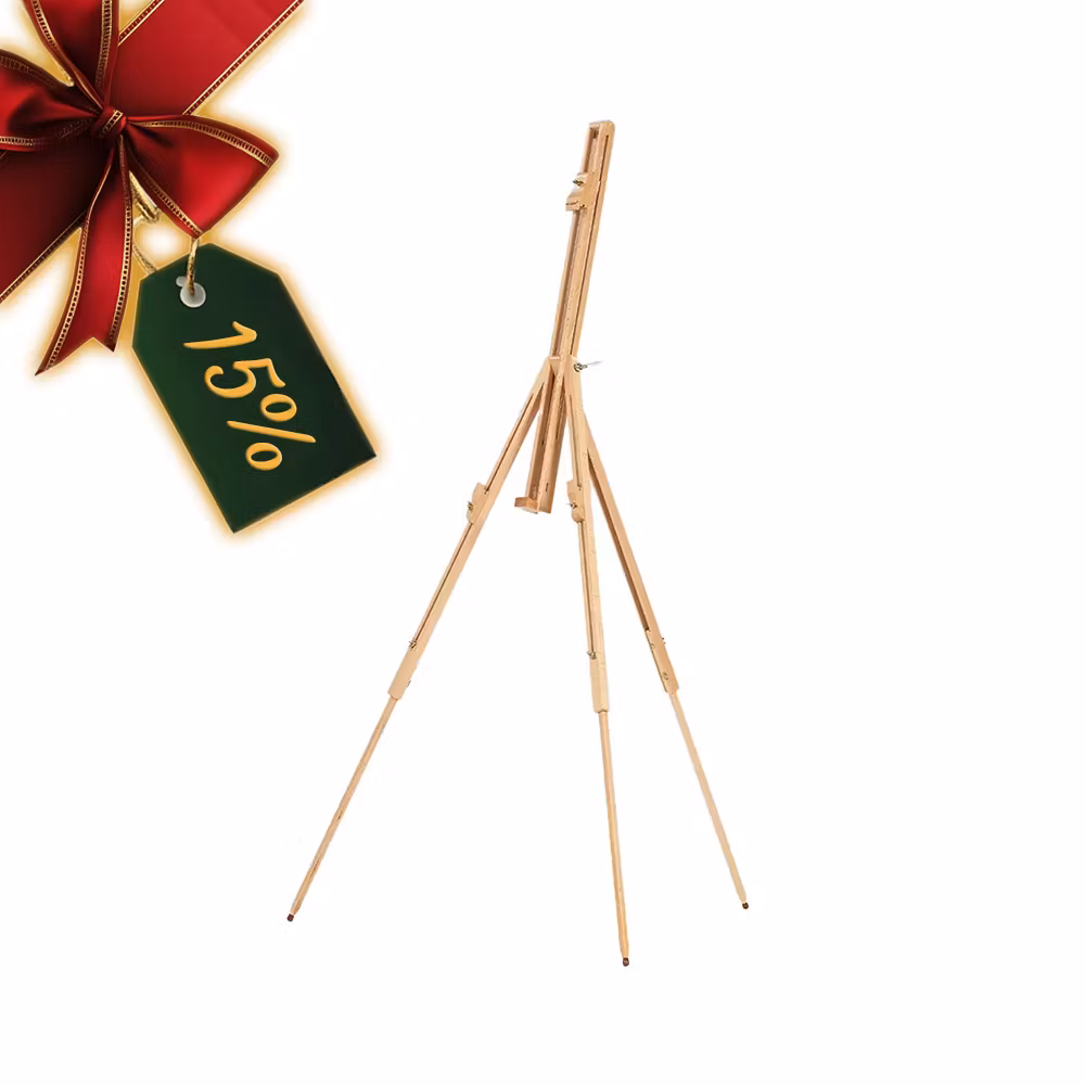 Kompakt, stødig og pålitelig staffeli. Dette flotte MEEDEN Tripod Plein Air-staffeliet kombinerer fleksibilitet, bærbarhet og allsidighet. Det er nøye produsert av høykvalitets bøketre med justerbare deler i messing. Den justerbare lerretsholderen kan roteres til ønsket vinkel.